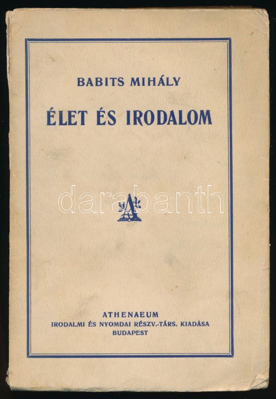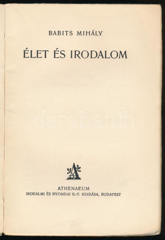 Babits Mihály: Élet és irodalom. A szerző, Babits Mihály (1883-1941) költő, író, irodalomtörténész, műfordító, a Nyugat főszerkesztője (1929-1941) által Gyergyai Albert (1893-1981) irodalomtörténész, író, műfordító részére DEDIKÁLT példány! Bp.,[1929],Athenaeum, 207+1 p. Első kiadás. Kiadói papírkötés, szakadt, foltos borítóval.