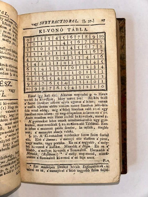 Maróthi György: Arithmetica vagy számvetésnek mestersége, Mellyet írt, és Közönséges Haszonra, föképen a' magyar Országon elö-fordúlható Dolgokra, alkalmaztatván ki-adott 1743-dik Esztendöben, --. Most pedig Másodszor e' Nagyobb Formában, valamivel bővebben, ki-botsáttatott. Debrecen, 1763. Margitai István. 302 p. + 1 kihajt. mell. Az ELSŐ magyar nyelvű iskolai számtankönyv harmadik kiadása. Enyhén kopottas, korabeli keménytáblás papírkötésben.