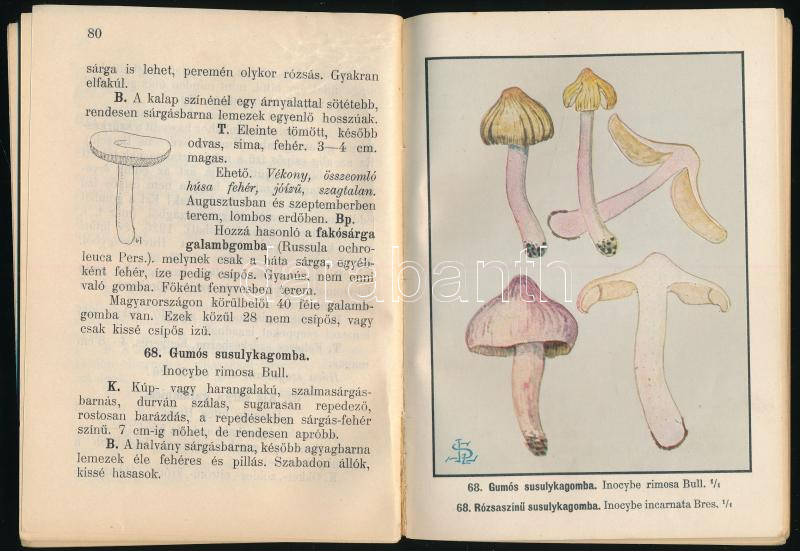 Szemere László: Gombáskönyv kezdők részére. Útmutató a gyakoribb gombák megismeréséhez és értékesítéséhez. 250 gomba leírása 50 színes képpel és 50 szövegközti ábrával. Magyar gombáskönyvek és képek 1. (DEDIKÁLT). Bp., 1926, Szerzői kiadás (M. Kir. Állami Nyomda), 293+(3) p.+ 50 (színes) t. Első kiadás. Szövegközti fekete-fehér és egészoldalas színes illusztrációkkal. Kiadói papírkötés, foltos, sérült borítóval, a könyvtesttől elváló elülső borítóval, belül nagyrészt jó állapotban, kissé laza fűzéssel, néhány kissé foltos lappal. A szerző, Szemere László (1884-1974) mikológus, ornitológus által DEDIKÁLT példány: ,,Szíves könyvismertetésre tisztelettel - szerző".