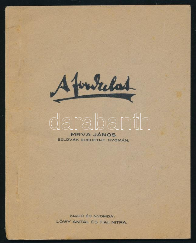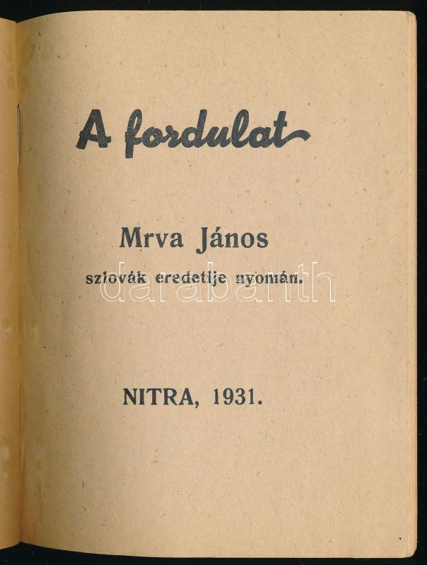 Mrva János: A fordulat. - - szlovák eredetije nyomán. Nitra, 1931., Lö... https://www.darabanth.com/de/43-Gross-Auktion/43.1/Bucher/Bucher-Geschichte~17593/Mrva-Janos-A-fordulat--szlovak-eredetije-nyoman-Nitra-1931-Lowy-Antal-es-Fiai-2plus45-p~II3203806