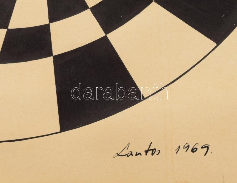 Lantos Ferenc (1929-2014): Op-art kompozíció, 1969. Tus, papír, jelezve jobbra lent, kissé foltos. Paszpartuban, 31x31 cm. / ink on paper, signed, slightly stained, in passepartout