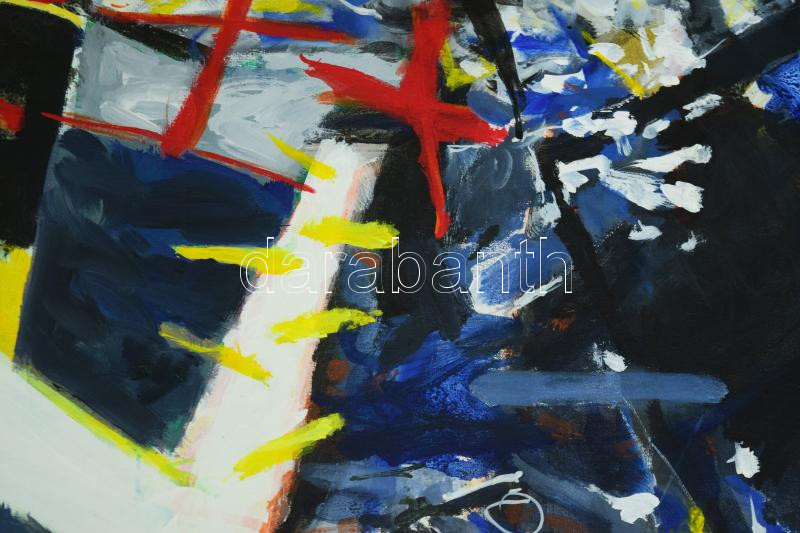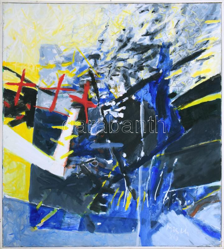 Misch Ádám (1935-1995): Hosszú ideje - seit langer Zeit 1986. Akril, vászon, jelezve jobbra lent (Misch 86), hátoldalán Misch Ádám autográf feliratával, fakeretben, 100x90 cm. Kiállítva: Misch 80, emlékkiállítás, 2020, Budapest, Magyarországi Németek Háza (katalógus nélkül) / Adam Misch (1935-1995): A long time since (seit langer Zeit), 1986. Acrylic on canvas, signed lower right (Misch 86), with autograph description by Adam Misch on the reverse, framed, 100x90 cm, exhibited in 2020