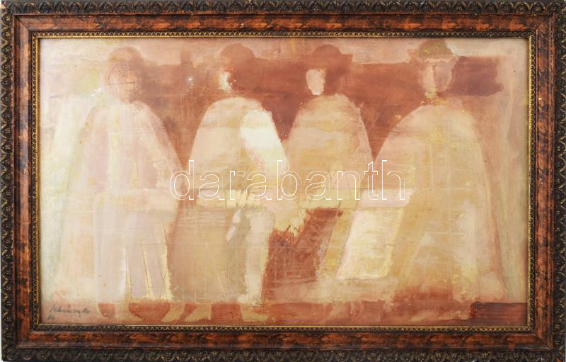 Beschreibung: Schéner Mihály (1923-2009): Subások, 1984. Olaj, farost. Jelezve balra lent. Hátoldalán Schéner Mihály autográf feliratával. Üvegezett fakeretben. 35x60 cm