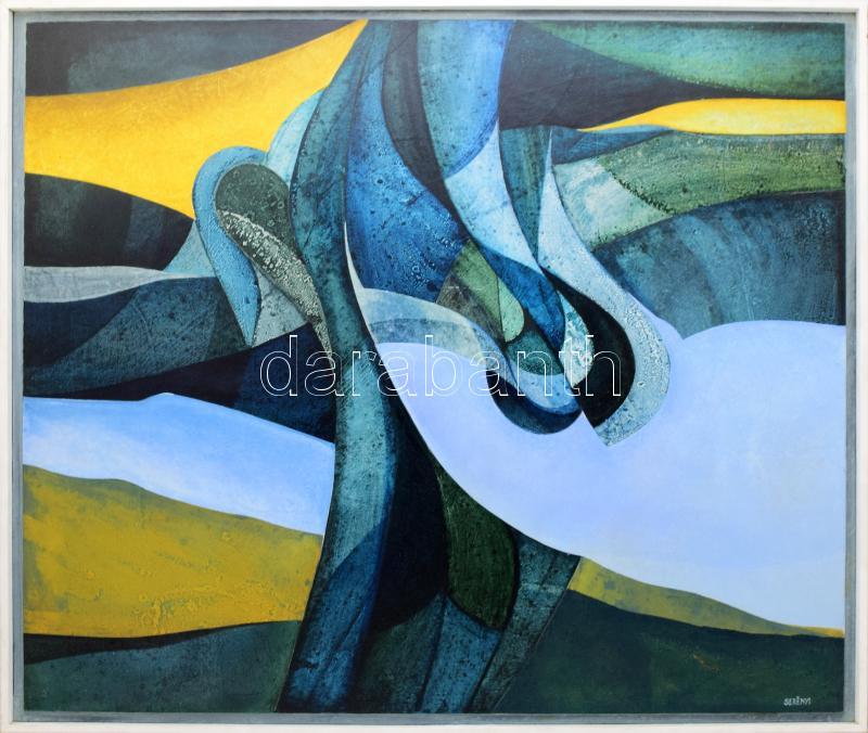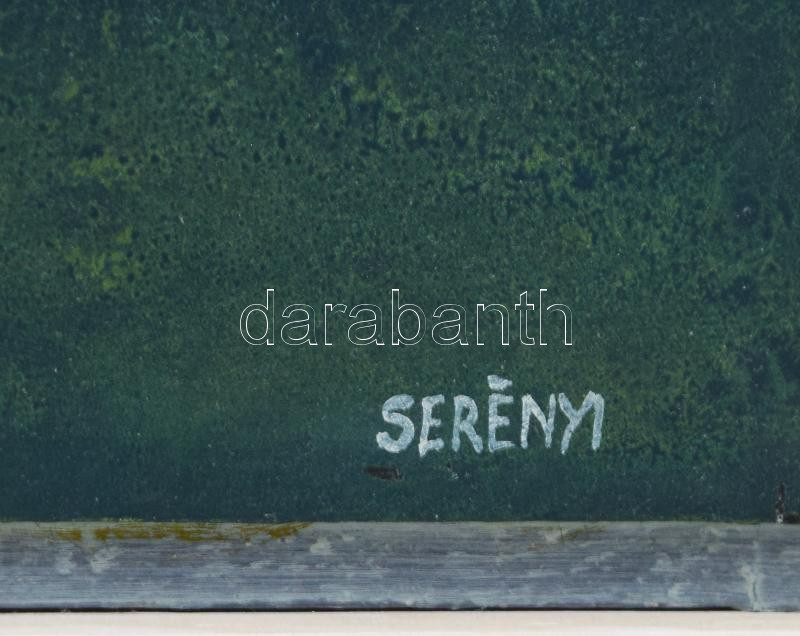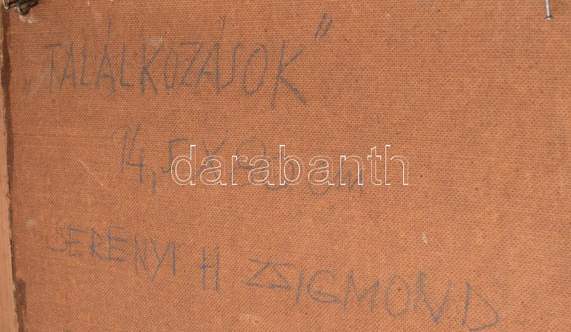 Serényi H. Zsigmond (1937-): Találkozások, 1992. Olaj, farost. Jelezve jobbra lent. Hátoldalán autográf felirattal és címkén a művész bélyegzőjével. Fakeretben. 80x95 cm / oil on fibre board, signed, with autograph description and the artist's stamp on the reverse