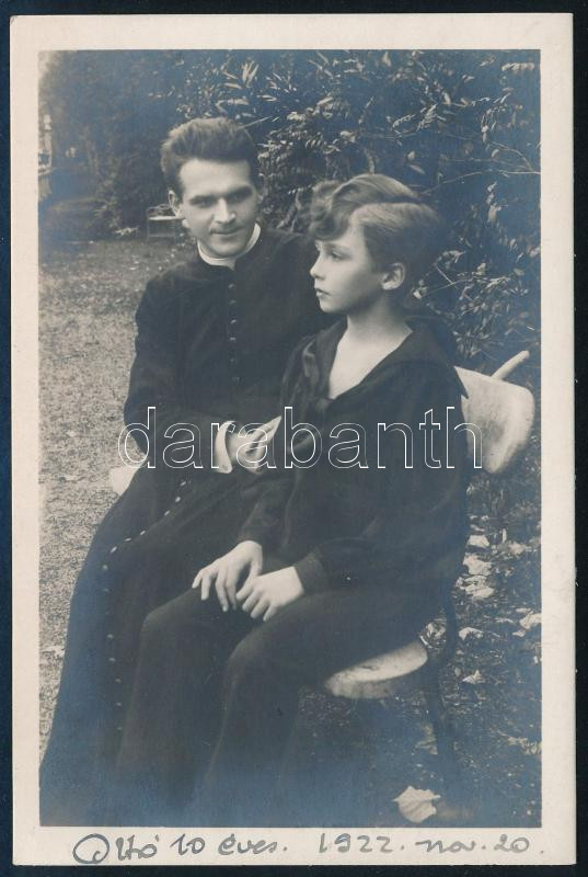 1922 Habsburg Ottó (1912-2011) trónörökös és nevelője Zsámboky Pál fot... https://www.darabanth.com/de/43-Gross-Auktion/43.1/Historische-Dokumenten-Manuskripten/Habsburgen-im-Ungarn~17604/1922-Habsburg-Otto-1912-2011-tronorokos-es-neveloje-Zsamboky-Pal-fotolapon-hatoldalan~II3235770