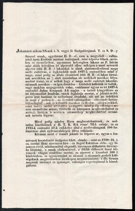 Beschreibung: cca 1800 Magyar nyelvű folyamodvány peres ügyben