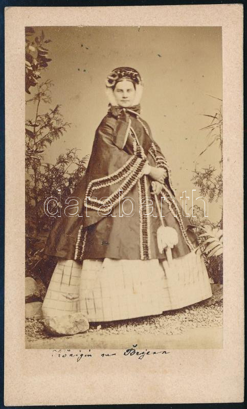 Beschreibung: 1862 Mária (1825-1889) bajor anyakirálynő portréja, keményhátú fotó H. Holz müncheni műterméből, 10,5×6,5 cm