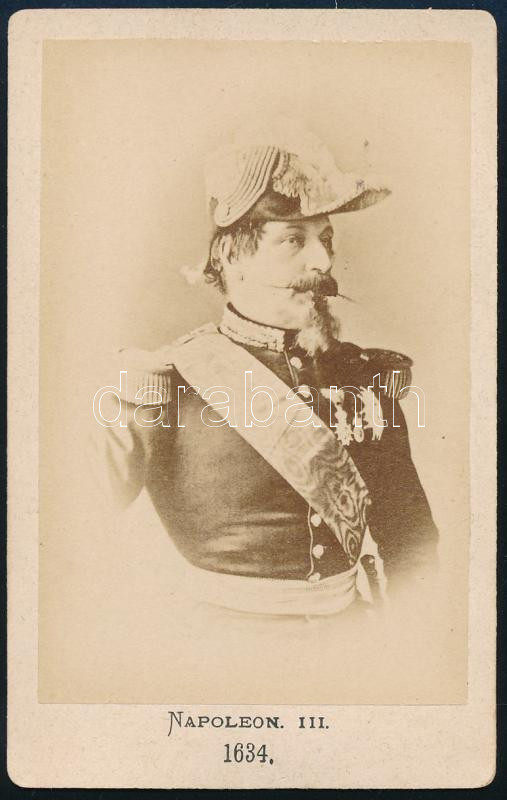 cca 1860-1870 III. Napóleon (1808-1973) francia császár portréja egyenruhában és kitüntetésekkel, keményhátú fotó, jelzés nélkül, 10×6,5 cm / cca 1860-70 Portrait of French Emperor Napoleon III, vintage photo, unsigned, 10×6,5 cm