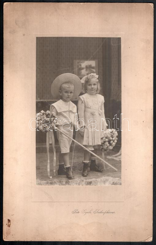Beschreibung: cca 1900 Székesfehérvár, Pete Gyula fényképész műtermében készült, keményhátú, vintage fotó, 29x18,3 cm