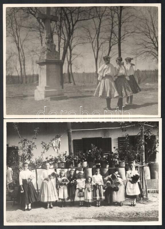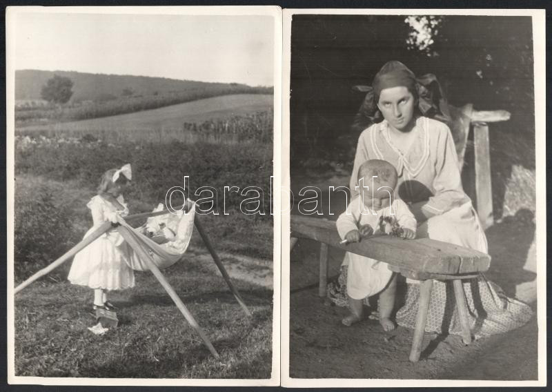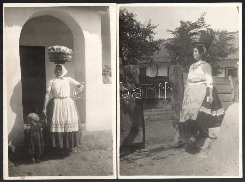 cca 1933 Kankovszky (Kankowsky) Ervin (1884-1945) fotográfus felvételei, 15 db nagyméretű fotó (sajtófotó), főként néprajzi témában (falusi életképek, népviselet, stb.), a hátoldalon pecséttel jelzettek (Kankovszky's Hungarian Presse-Photographic Exchange), részben feliratozva, 23x16 cm körüli méretben. Eredeti, sérült borítékban, Szilágyi Károlynak, a Magyar-Francia Biztosító igazgatójának szóló címzéssel (a postai bélyegzésen 1933-as dátummal).