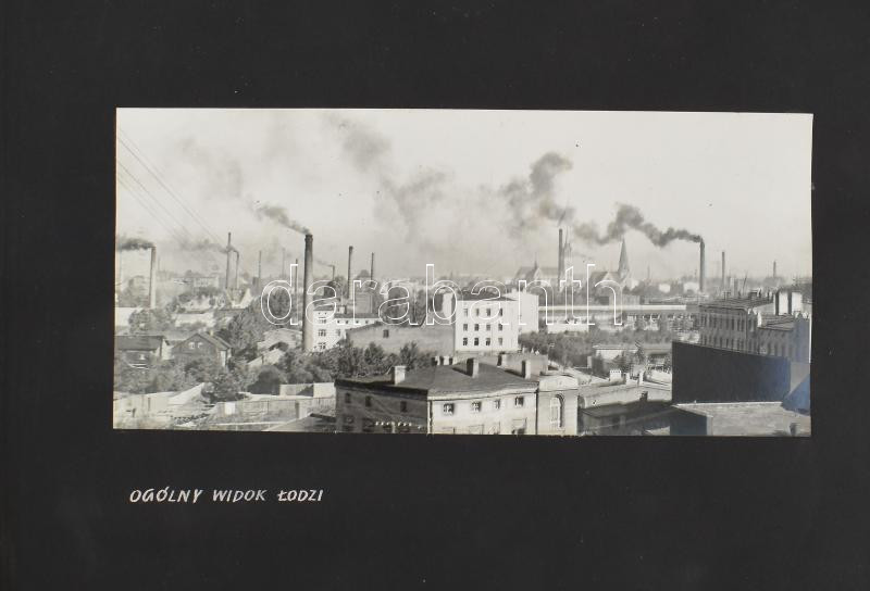 Beschreibung: cca 1950 Łódź, Lengyelország, városképek, gyárbelsők, fotók albumba ragasztva, feliratozva, 34 db, vegyes méretben