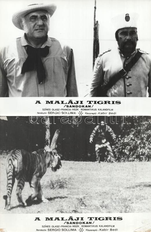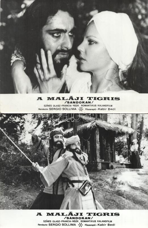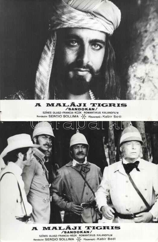 cca 1989 előtt készült, ,,A maláji tigris - Sandokan" című olasz - francia - NSZK film jelenetei és szereplői, 16 db vintage produkciós filmfotó (vitrinfotó, lobbyfotó) ezüst zselatinos fotópapíron, a használatból eredő (esetleges) kisebb hibákkal, 18x24 cm