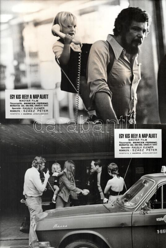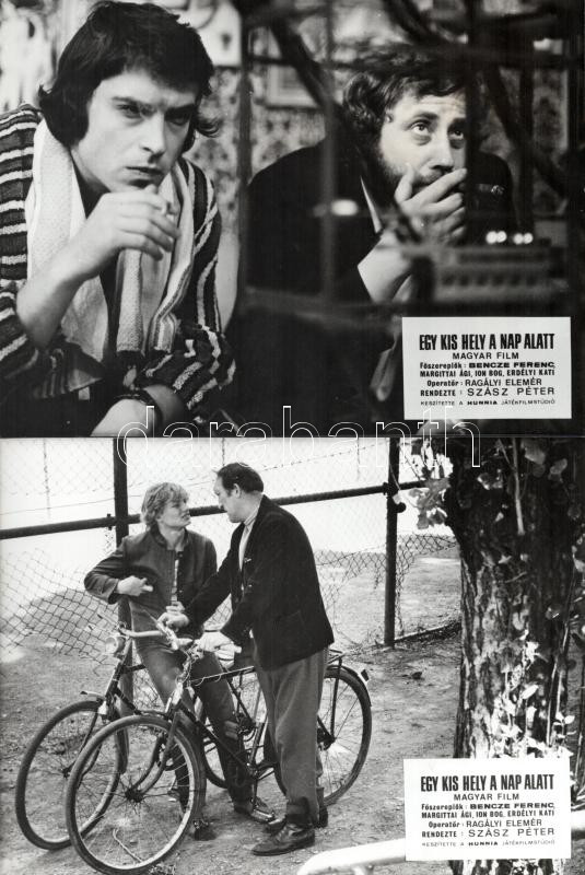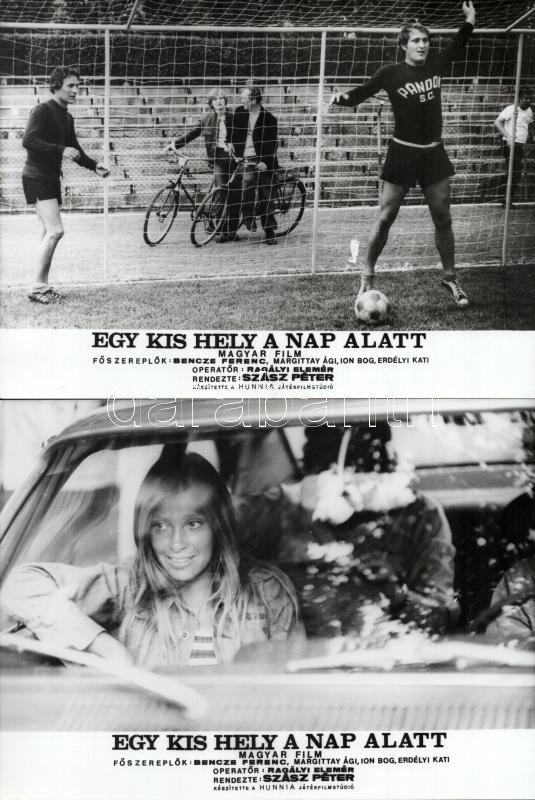 cca 1989 előtt készült, ,,Egy kis hely a Nap alatt" című magyar film jelenetei és szereplői, 11 db vintage produkciós filmfotó (vitrinfotó, lobbyfotó) ezüst zselatinos fotópapíron, a használatból eredő (esetleges) kisebb hibákkal, 18x24 cm