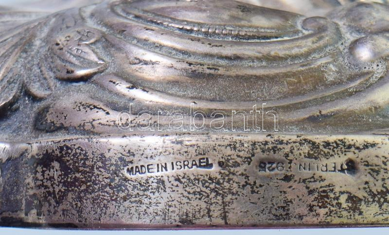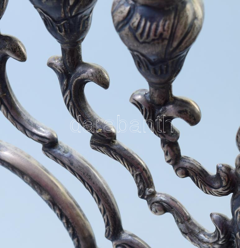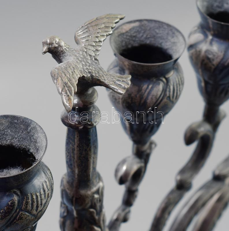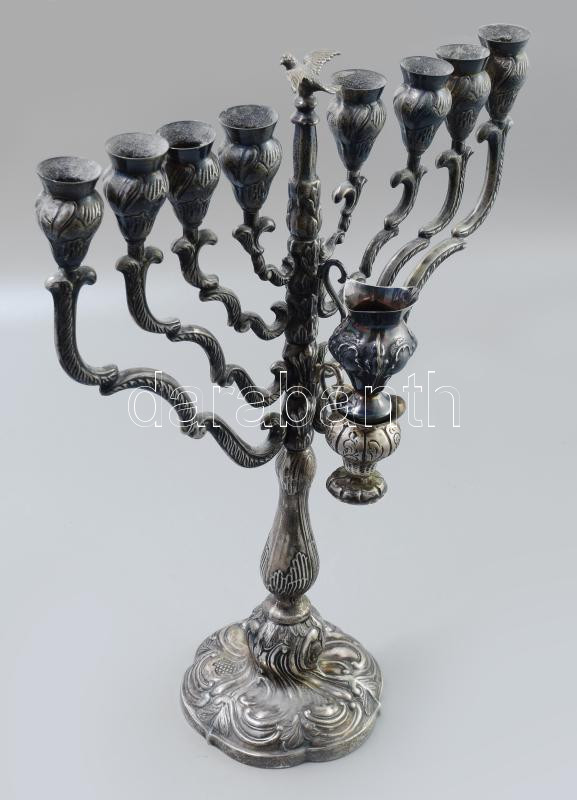 Orosz ezüst (Ag) hanukia. cca 19-20. sz., madárfigurával díszített, teljes, jelzett (izraeli jelzéssel), m: 43 cm, 780g /// Russian silver (Ag) hanukkiah. Circa 19th-20th century, decorated with a bird figure, complete, marked (with Israel hallmark), height: 43 cm, 780g