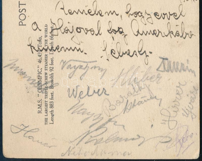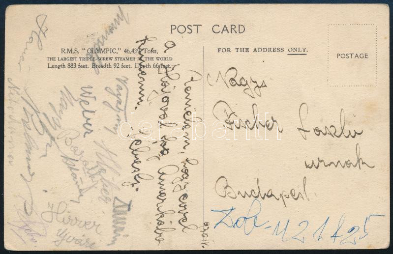 cca 1930 A Hungária FC (ma MTK) labdarúgó csapat tagjainak aláírásai képeslapon Sebes Gusztáv, Hirzer, Wéber, Kocsis, stb / Autograph signed postcard of the Hungarian football team Hungaria (later MTK)