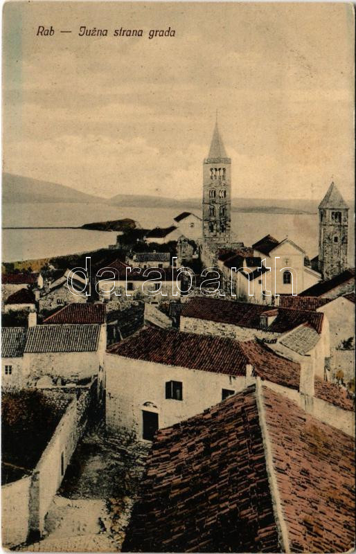 Rab, Arbe; Juzna strana grada. Josip Bakota https://www.darabanth.com/de/430-Fernauktion/430.0/Ansichtskarten/Kroatien~1500011/Rab-Arbe-Juzna-strana-grada-Josip-Bakota~II2759521