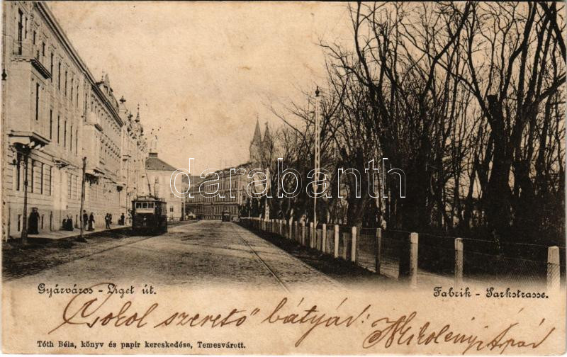1904 Temesvár, Timisoara; Gyárváros, Liget út, villamosok. Tóth Béla k... https://www.darabanth.com/de/430-Fernauktion/430.0/Ansichtskarten/Siebenburgen~1500005/1904-Temesvar-Timisoara-Gyarvaros-Liget-ut-villamosok-Toth-Bela-kiadasa-Fabric-street~II2759527