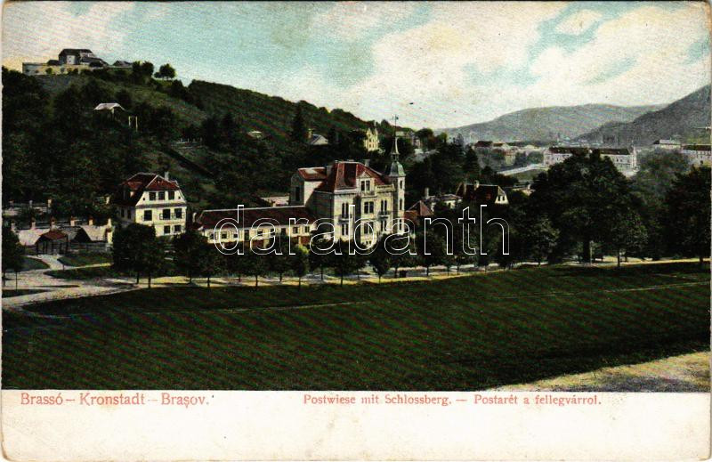 Brassó, Kronstadt, Brasov; Postarét a fellegvárról / Postwiese mit Sch... https://www.darabanth.com/de/430-Fernauktion/430.0/Ansichtskarten/Siebenburgen~1500005/Brasso-Kronstadt-Brasov-Postaret-a-fellegvarrol-Postwiese-mit-Schlossberg-Livadia-postei-~II2764294