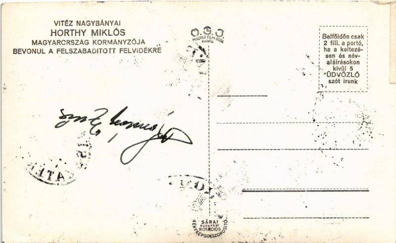 1938 Komárom, Komárno; bevonulás, Vitéz Nagybányai Horthy Miklós Magya... https://www.darabanth.com/de/430-Fernauktion/430.0/Ansichtskarten/Slowakei~1500006/1938-Komarom-Komarno-bevonulas-Vitez-Nagybanyai-Horthy-Miklos-Magyarorszag-kormanyzoja-f~II2760691