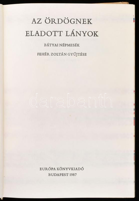 Az ördögnek eladott lányok. Bátyai népmesék. Fehér Zoltán gyűjtése. Válogatta, az utószót és a jegyzeteket írta: Fehér Zoltán. A könyv borító illusztrációja és az illusztrációk Lóránt Lilla munkái. Népek meséi sorozat. Bp., 1987, Európa. Kiadói félvászon-kötés, kiadói kissé szakadt, kissé foltos papír védőborítóban, foltos lapélekkel, volt könyvtári példány.