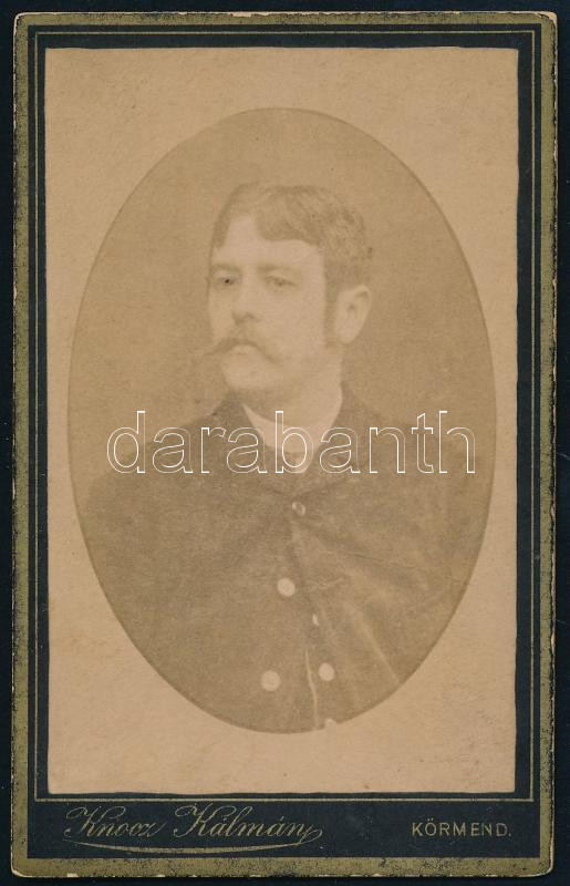 cca 1882 Férfi portréja, vintage keményhátú fotó Knocz Kálmán (Körmend... https://www.darabanth.com/de/430-Fernauktion/430.0/Fotografie/Foto~500023/cca-1882-Ferfi-portreja-vintage-kemenyhatu-foto-Knocz-Kalman-Kormend-mutermebol-11x7~II2764928