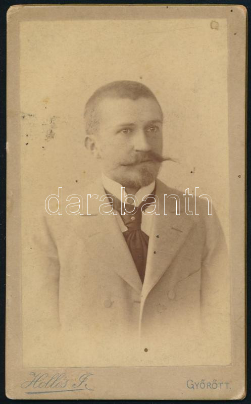 cca 1900 Fiatal férfi portréja, vintage keményhátú fotó Hollós József ... https://www.darabanth.com/de/430-Fernauktion/430.0/Fotografie/Foto~500023/cca-1900-Fiatal-ferfi-portreja-vintage-kemenyhatu-foto-Hollos-Jozsef-gyori-mutermebol-~II2764789