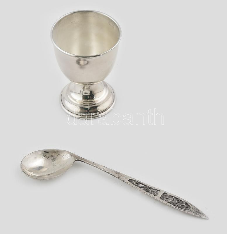 Ezüst (Ag) tojástartó és kanál. Jelzett, kis kopásnyomokkal, össz. 44,... https://www.darabanth.com/de/430-Fernauktion/430.0/Juwellen-und-Kunstobjekte-aus-Edelmetall/Juwellen-und-Kunstobjekte-aus-Edelmetall~2000023/Ezust-Ag-tojastarto-es-kanal-Jelzett-kis-kopasnyomokkal-ossz-44-1-g~II2762203