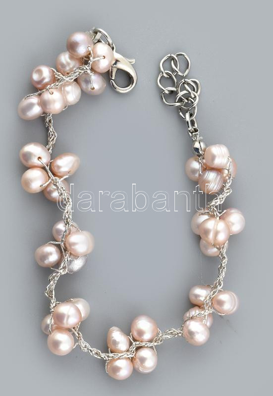 Beschreibung: Tenyésztett gyöngy karkötő, fém lánccal, h: 21,5 cm