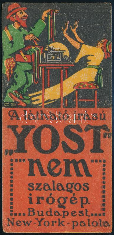 cca 1910-1920 "A látható írású "Yost" nem szalagos írógép. Budapest, N... https://www.darabanth.com/de/430-Fernauktion/430.0/Kunst-Dokumente-andere-Sammelgebiete/Werbungen~500024/cca-1910-1920-A-lathato-irasu-Yost-nem-szalagos-irogep-Budapest-New-Yok-Palota-szam~II2760619
