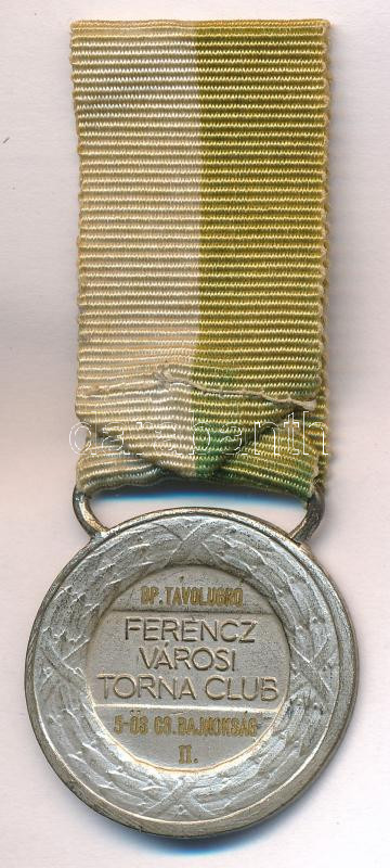 Beschreibung: Berán Lajos (1882-1943) 1928. "Ferencz Városi Torna Club" kétoldalas, ezüstözött bronz díjérem szalagon, "BP. Távolugró 5-ös Cs.bajnokság II." gravírozással (30mm) T:1-,2