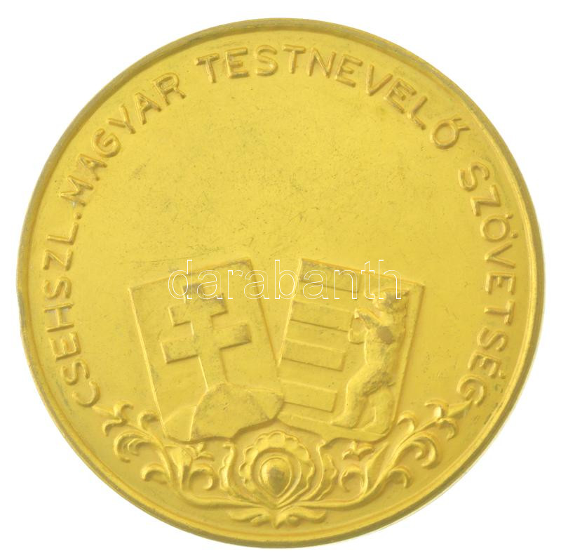 Csehszlovákia ~1930. "Jövődet ép tested védi / Csehszl. Magyar Testnevelő Szövetség" aranyozott bronz díjérem. Szign.: Makovits (40mm) T:2 Czechoslovakia~1930. "Your healthy body defends your future / Hungarian Association of Physical Education in Czechslovakia" gilt bronze medallion. Sign: Makovits (40mm) C:XF
