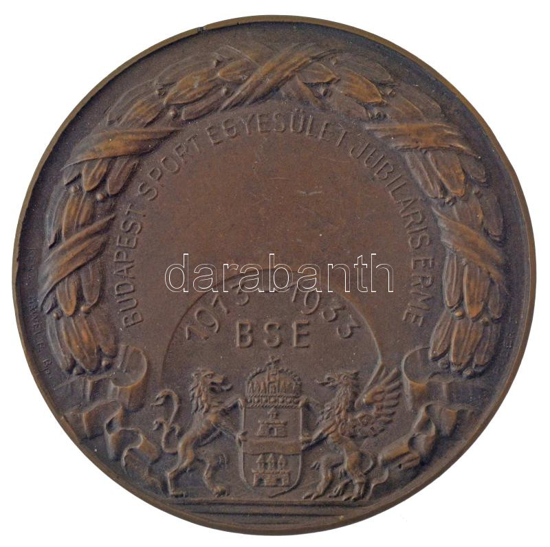 Pincés Puder István (1907-) 1933. "Budapest Sport Egyesület Jubiláris Érme - BSE 1913-1933" bronz emlékérem hátoldalán "Pontverseny III. 1933" gravírozással (59mm) T:1-,2 patina, ph.