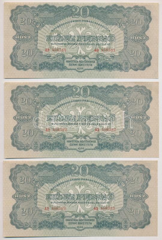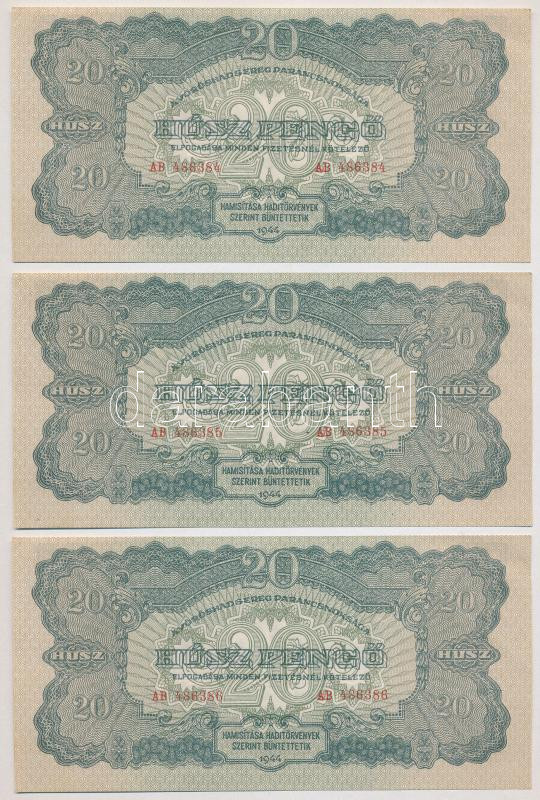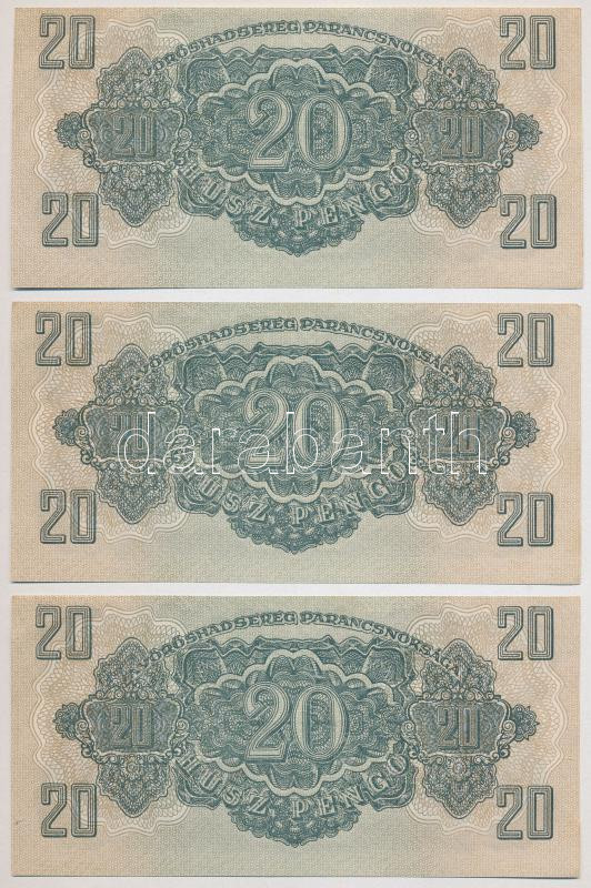 Beschreibung: 1944. 20P "A Vöröshadsereg Parancsnoksága" (6x) sorszámkövetők "AB 486381 - AB 486386" T:I-