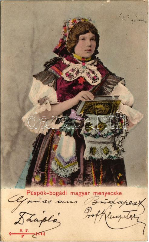 1902 Püspök-bogádi magyar menyecske / Hungarian folklore (EK) https://www.darabanth.com/de/431-Fernauktion/431.0/Ansichtskarten/Folklore~2000022/1902-Puspok-bogadi-magyar-menyecske-Hungarian-folklore-EK~II2772211