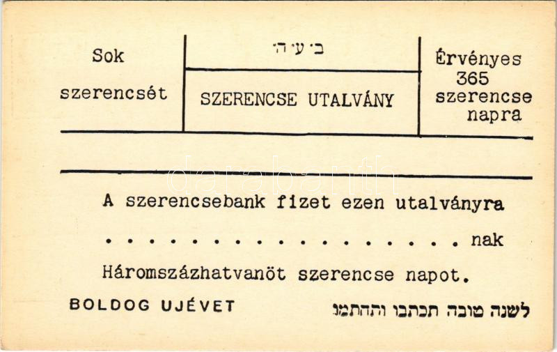 Beschreibung: Zsidó újévi szerencse utalvány, héber és magyar nyelvű újévi üdvözlet / Jewish Hebrew New Year greeting
