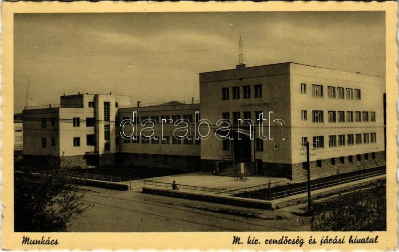 1941 Munkács, Mukacheve, Mukacevo; M. kir. rendőrség és járási hivatal... https://www.darabanth.com/de/431-Fernauktion/431.0/Ansichtskarten/Karpatenukraine~2000007/1941-Munkacs-Mukacheve-Mukacevo-M-kir-rendorseg-es-jarasi-hivatal-police-and-county-hal~II2581259