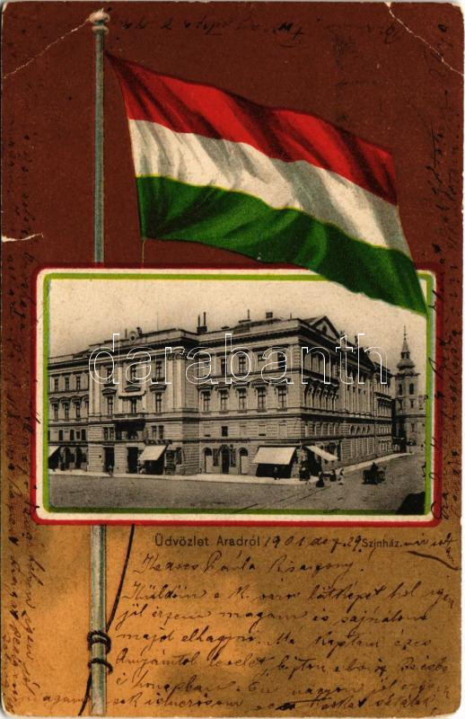 1901 Arad, Színház. Szecessziós magyar zászlós litho keret / Theatre. ... https://www.darabanth.com/de/431-Fernauktion/431.0/Ansichtskarten/Siebenburgen~2000005/1901-Arad-Szinhaz-Szecesszios-magyar-zaszlos-litho-keret-Theatre-Art-Nouveau-litho-frame-w~II2770221