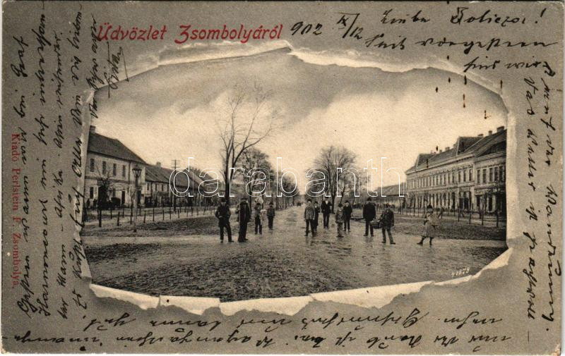 Beschreibung: 1902 Zsombolya, Jimbolia; Fő utca. Perlstein F. kiadása / main street. Art Nouveau (EK)