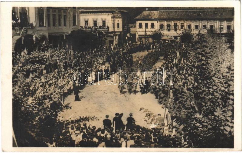 1940 Nagybánya, Baia Mare; bevonulás / entry of the Hungarian troops (... https://www.darabanth.com/de/431-Fernauktion/431.0/Ansichtskarten/Siebenburgen~2000005/1940-Nagybanya-Baia-Mare-bevonulas-entry-of-the-Hungarian-troops-fl~II2320857