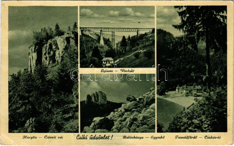 1942 Csík, Ciuc; Csíki üdvözlet! Hargita csicsói vár, gyimesi viadukt,... https://www.darabanth.com/de/431-Fernauktion/431.0/Ansichtskarten/Siebenburgen~2000005/1942-Csik-Ciuc-Csiki-udvozlet-Hargita-csicsoi-var-gyimesi-viadukt-Balanbanya-Egyesko-~II2770881