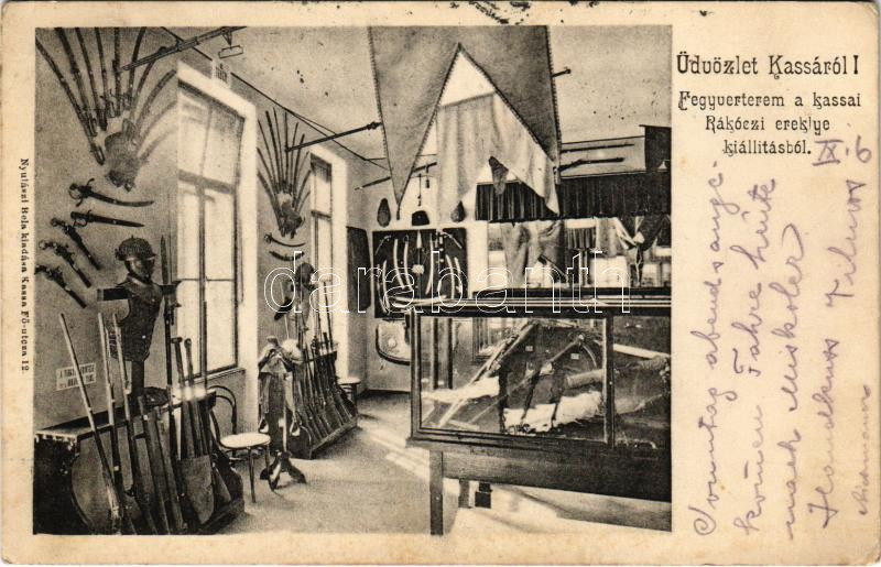 1903 Kassa, Kosice; Fegyverterem a Rákóczi ereklye kiállításból, belső. Nyulászi Béla kiadása / armory room of the Francis II Rákóczi Artifact Exhibition, interior with weapons (EK)