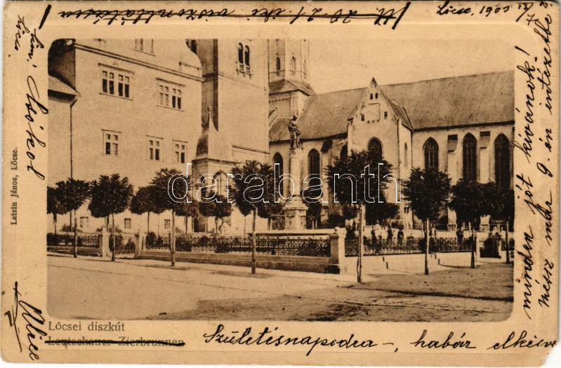 1903 Lőcse, Levoca; Leutschauer Zierbrunnen / Lőcsei díszkút. Latzin J... https://www.darabanth.com/de/431-Fernauktion/431.0/Ansichtskarten/Slowakei~2000006/1903-Locse-Levoca-Leutschauer-Zierbrunnen-Locsei-diszkut-Latzin-Janos-kiadasa-fountain-~II2769213