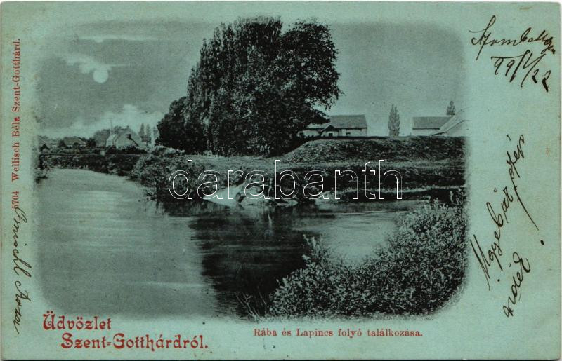 Beschreibung: 1899 (Vorläufer) Szentgotthárd, Rába ás Lapincs folyó találkozása este. Wellisch Béla kiadása