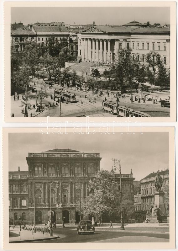 Beschreibung: Budapest, Nemzeti Múzeum, Kálvin tér, Magyar Tudományos Akadémia - 2 db modern Képzőművészeti Alap képeslap
