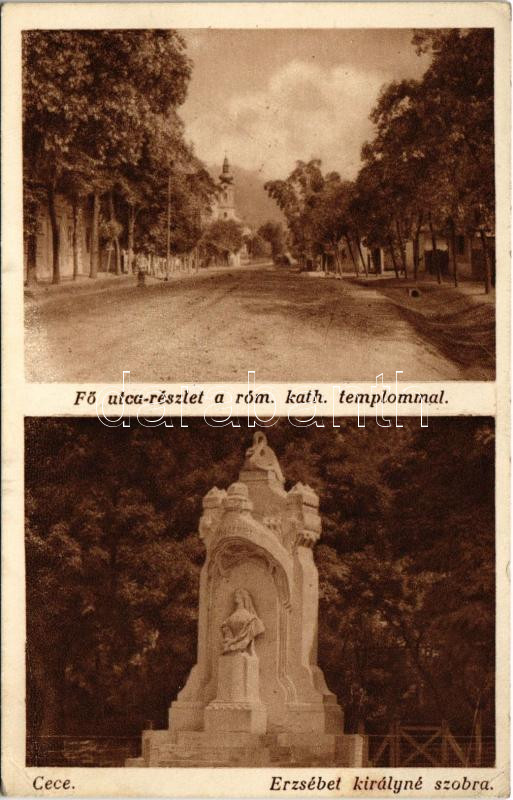 Cece, Czecze; Fő utca, Római katolikus templom, Erzsébet királyné (Sis... https://www.darabanth.com/de/431-Fernauktion/431.0/Ansichtskarten/Ungarn~2000004/Cece-Czecze-Fo-utca-Romai-katolikus-templom-Erzsebet-kiralyne-Sisi-szobra-EK~II2765198