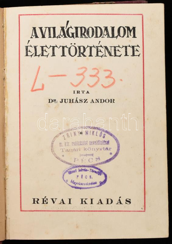 Juhász Andor: A világirodalom élettörténete. Bp., 1927., Révai, 466+5 ... https://www.darabanth.com/de/431-Fernauktion/431.0/Bucher/Bucher-Andere-kuriositaten~4000025/Juhasz-Andor-A-vilagirodalom-elettortenete-Bp-1927-Revai-466plus5-p-Atkotott-felvasz~II2768764