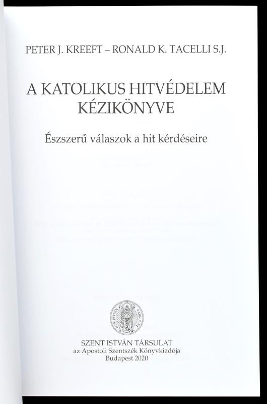 Peter J. Kreeft - Ronald K. Tacelli S. J.: A katolikus hitvédelem kézikönyve. Észszerű válaszok a hit kérdéseire. Bp., 2020., Szent István-Társulat. Kiadói papírkötés.