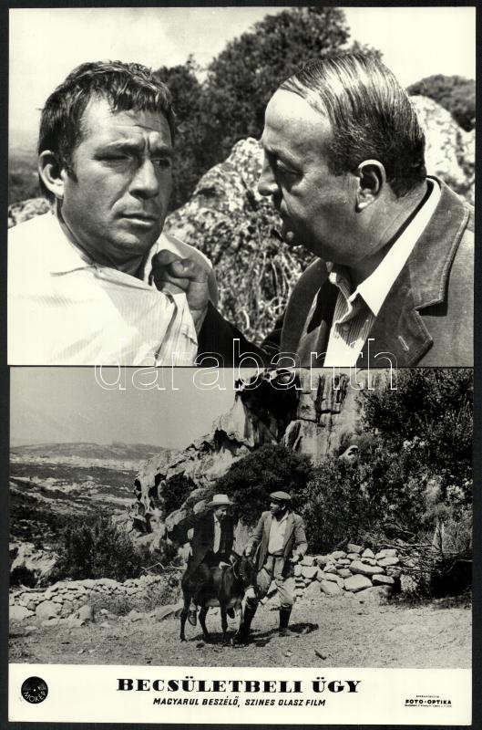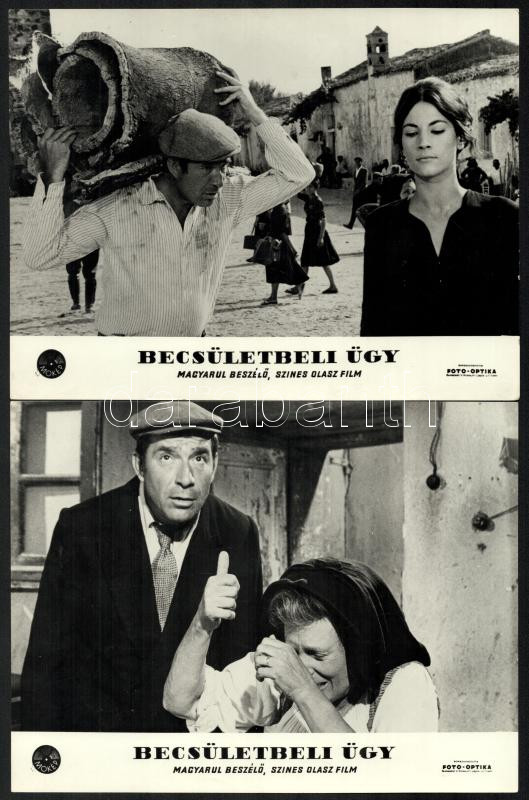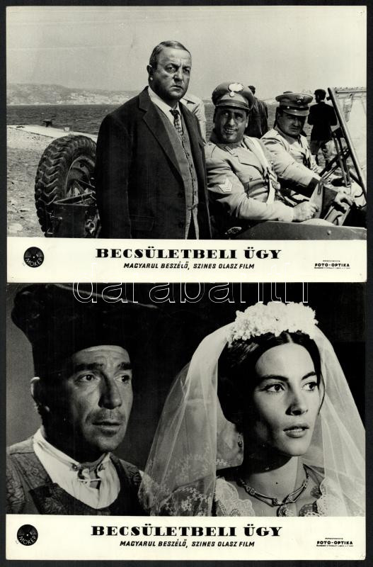 cca 1965 ,,Becsületbeli ügy" című olasz film jelenetei és szereplői, 13 db produkciós filmfotó, ezüst zselatinos fotópapíron, a használatból eredő (esetleges) kisebb hibákkal, 18x24 cm