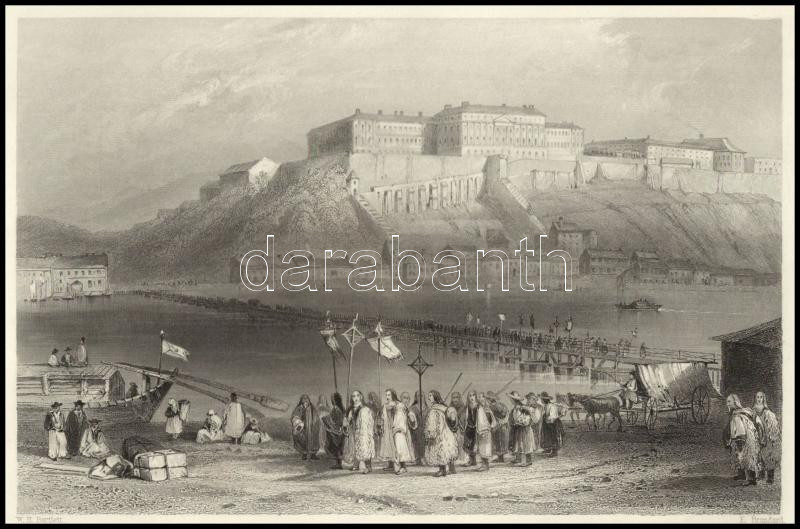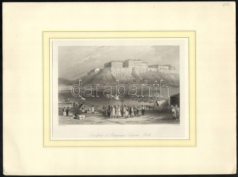 cca 1845 William Henry Bartlett (1809-1854)-Edward Brandard (1819-1898): Procession of Hungarian Pilgrims Pesth, - Pesti zarándokok felvonulása In: Beattie, William: The Danube, acélmetszet, 12x18 cm, paszpartuban