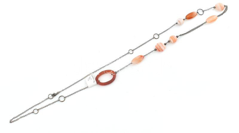 Beschreibung: Ezüst (Ag) nyaklánc, achátokkal, jelzés nélkül, h: 88cm, bruttó: 34g